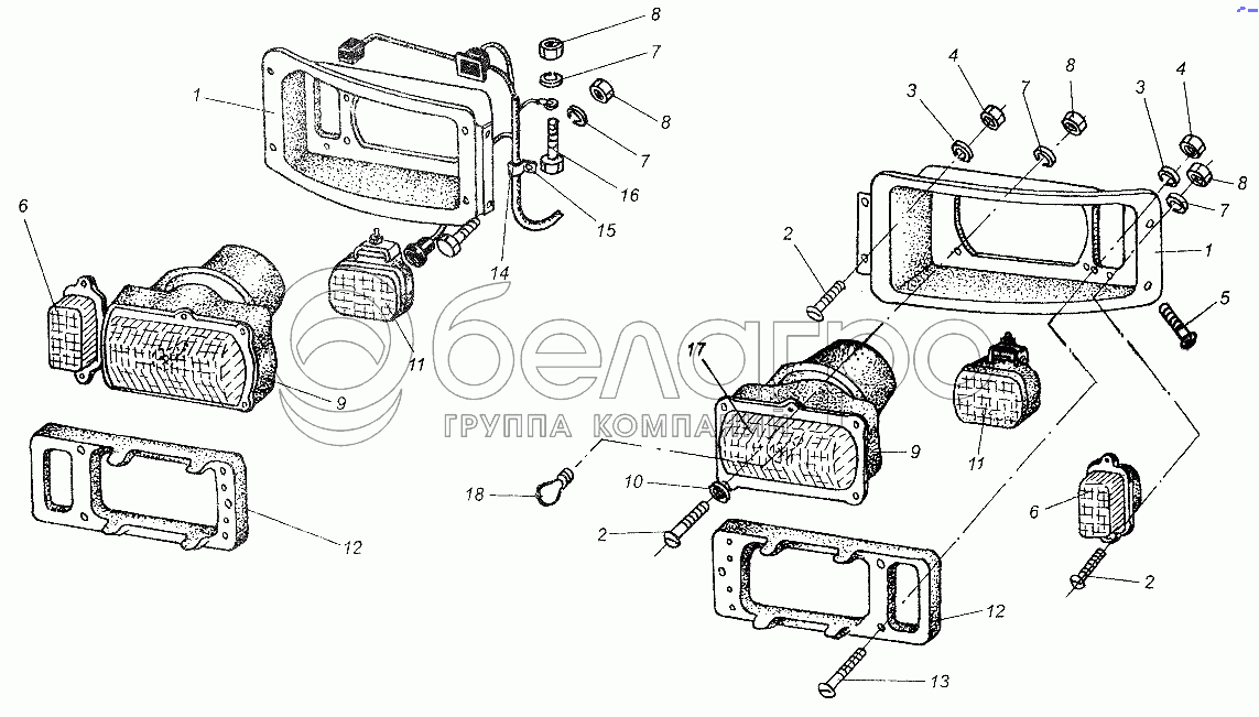 Каталог запасных частей к технике: МАЗ-64226. Установка фар