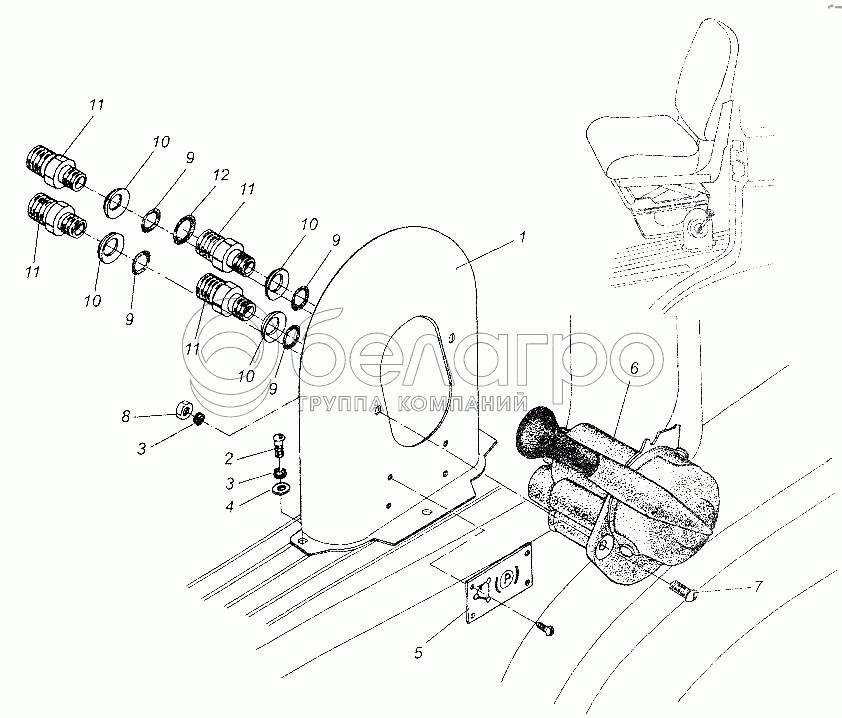 Каталог запасных частей к технике: МАЗ-64226. Установка крана тормозного с ручным управлением