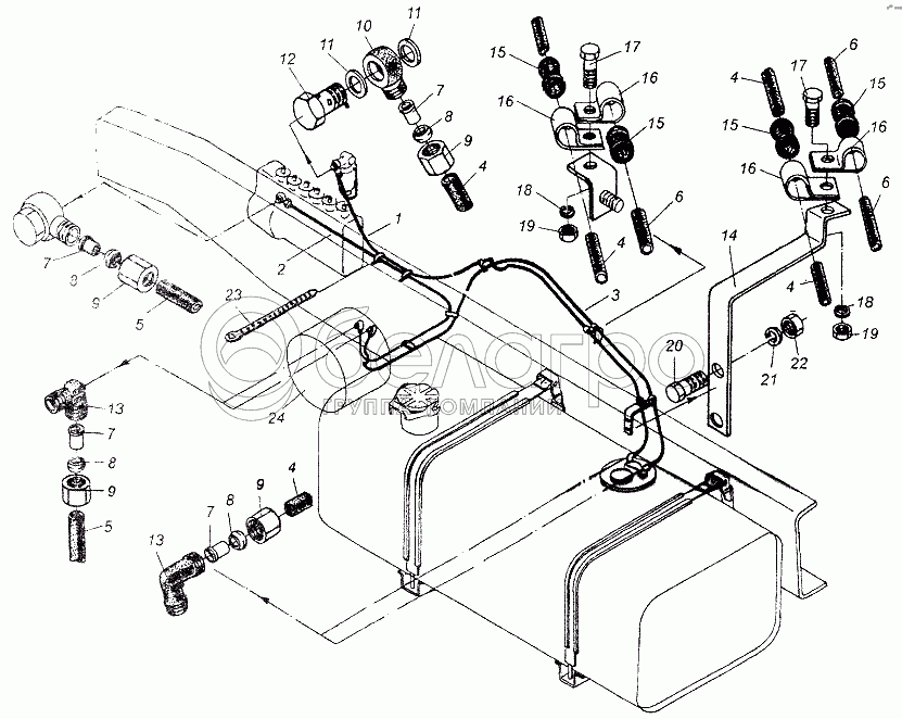 Каталог запасных частей к технике: МАЗ-64226. Установка топливопроводов с подогревом двигателя