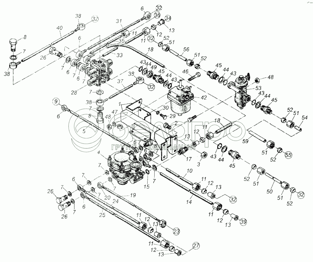 Каталог запасных частей к технике: МАЗ-64226. Установка тормозных аппаратов и трубопроводы