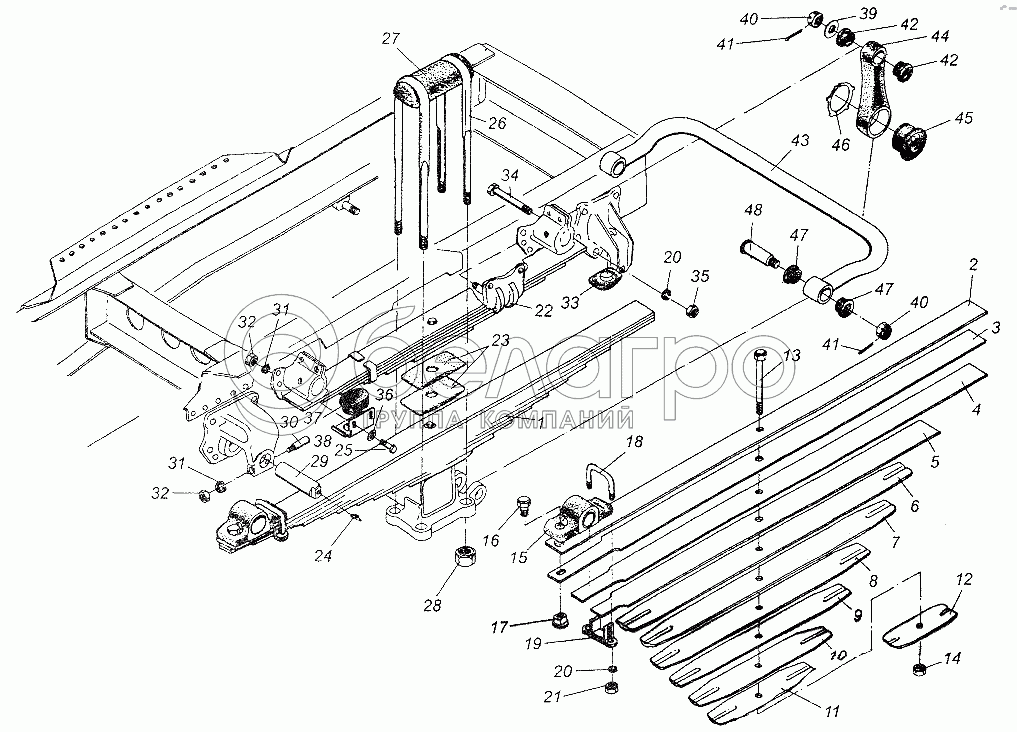 Каталог запасных частей к технике: МАЗ-64226. Установка задней подвески МАЗ-54326