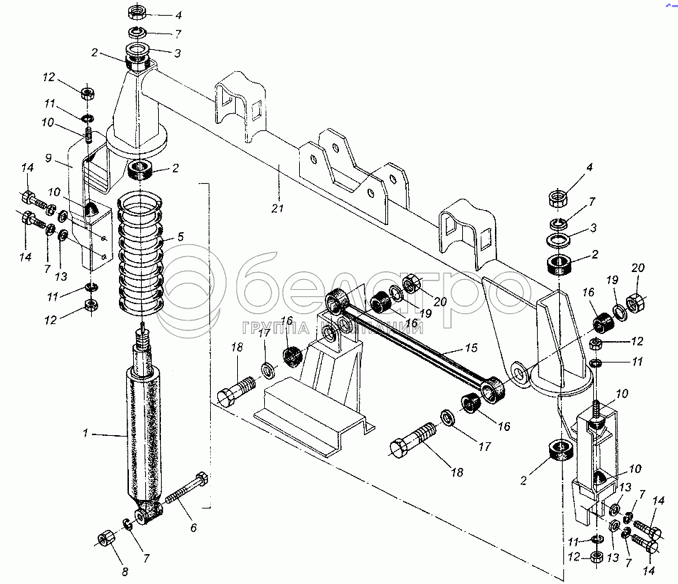 Каталог запасных частей к технике: МАЗ-64226. Заднее подрессоривание кабины