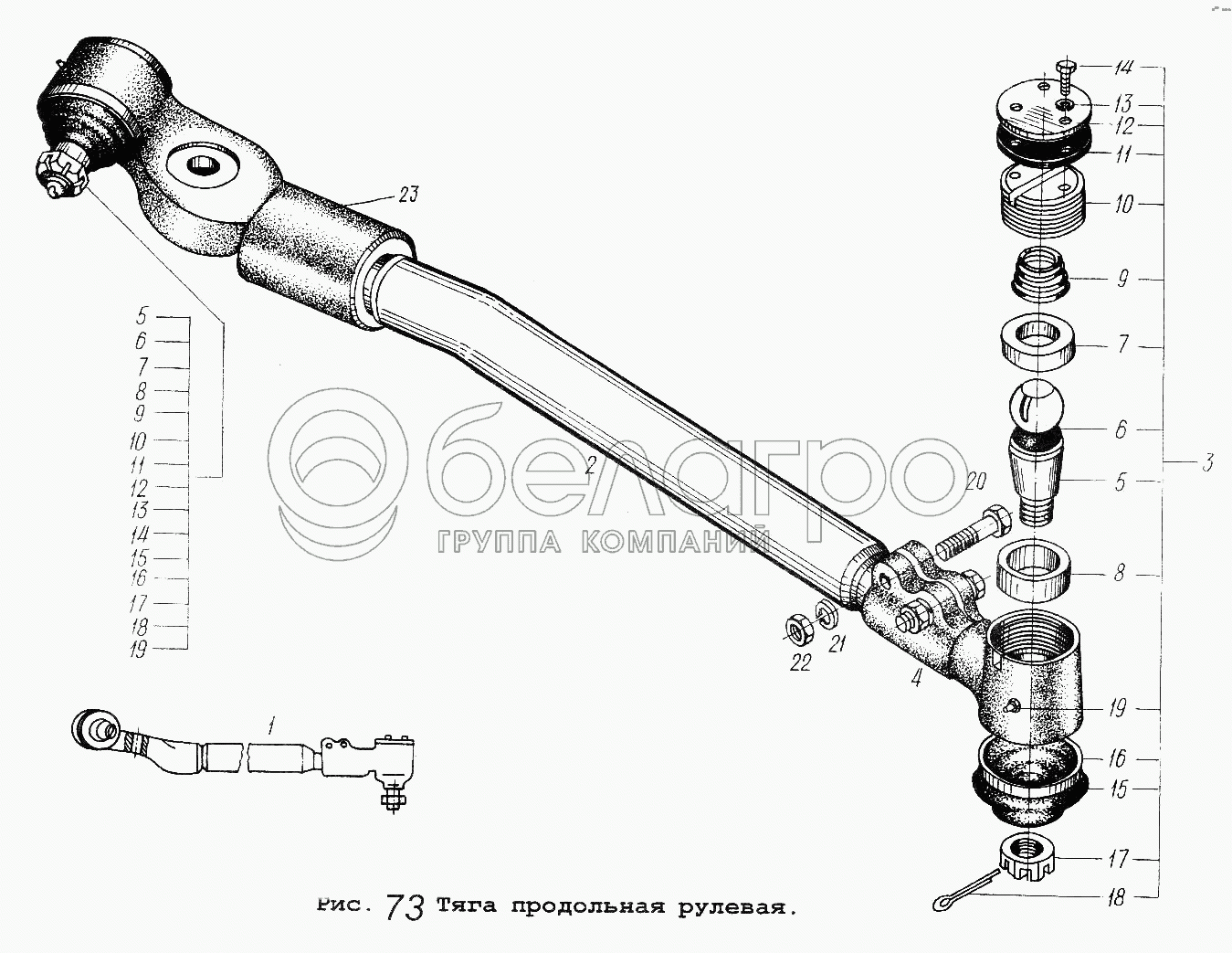 Каталог запасных частей к технике: МАЗ-64229. Тяга продольная рулевая