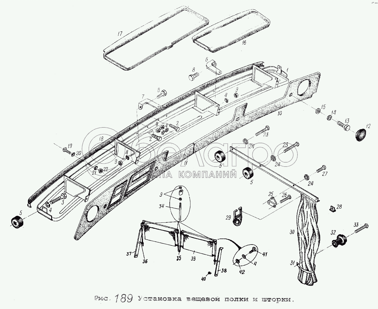 Каталог запасных частей к технике: МАЗ-64229. Установка вещевой полки и шторки