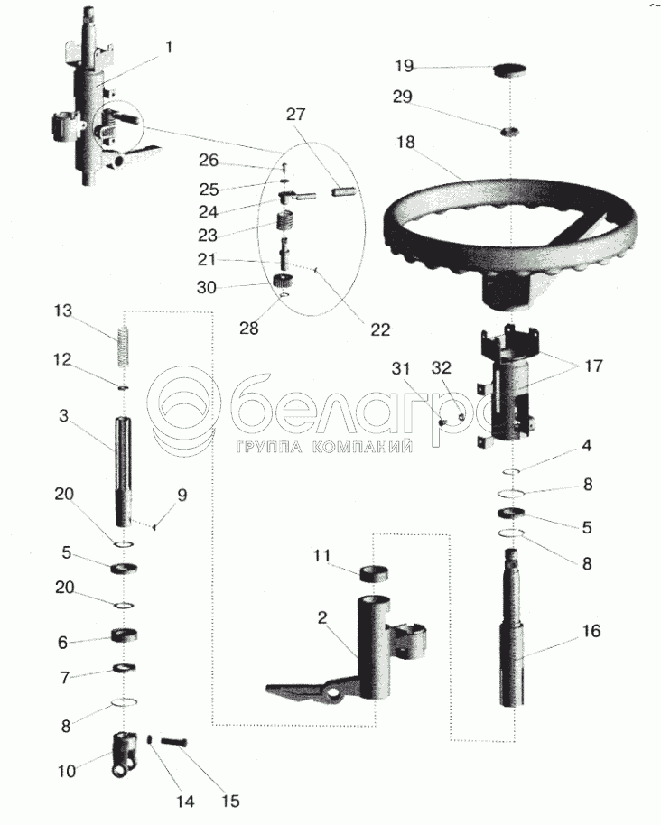 Каталог запасных частей к технике: МАЗ-6422. Колонка рулевая с колесом рулевого управления