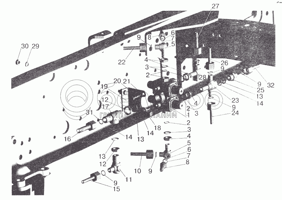 Каталог запасных частей к технике: МАЗ-6422. Крепление четырехконтурного клапана МАЗ-642208, 642205