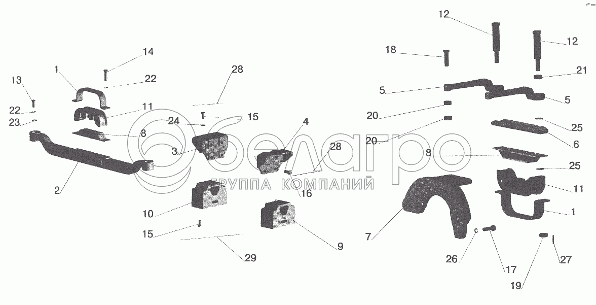 Каталог запасных частей к технике: МАЗ-6422. Крепление двигателя на автомобиле МАЗ-555102