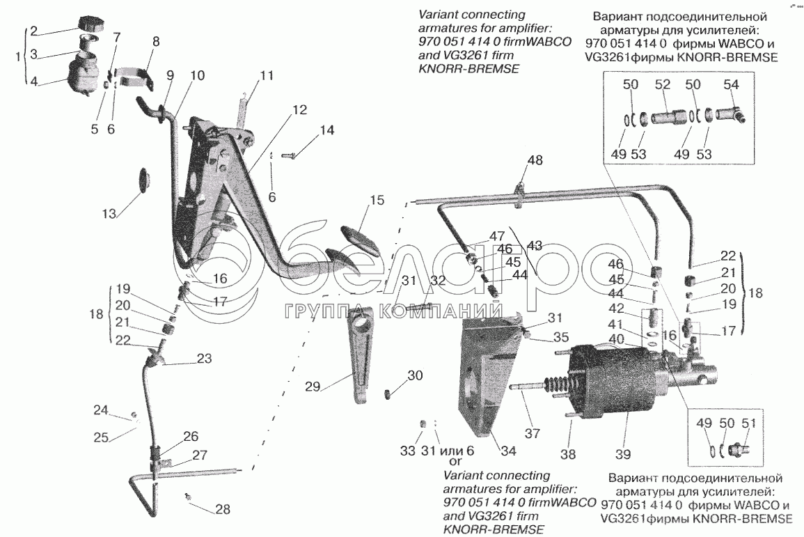 Каталог запасных частей к технике: МАЗ-6422. Механизм управления сцеплением