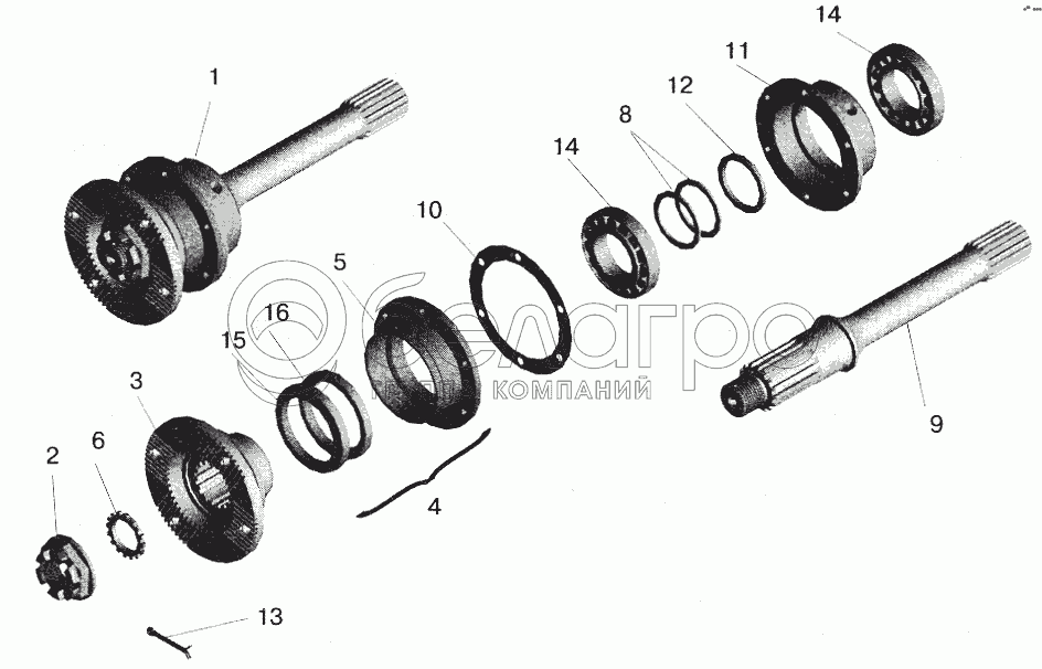 Каталог запасных частей к технике: МАЗ-6422. Мост средний. Вал задний