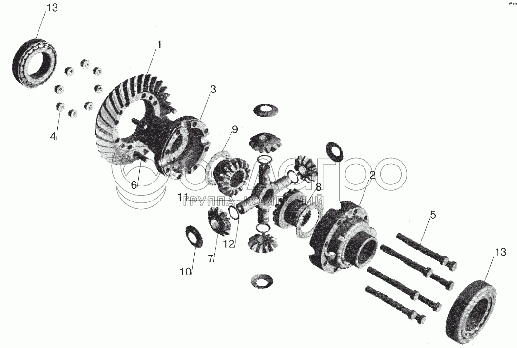 Каталог запасных частей к технике: МАЗ-6422. Мост задний МАЗ-543208. Дифференциал