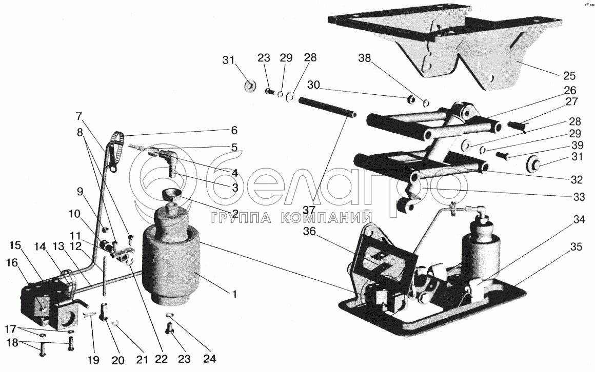 Каталог запасных частей к технике: МАЗ-6422. Подставка сиденья с пневмооборудованием