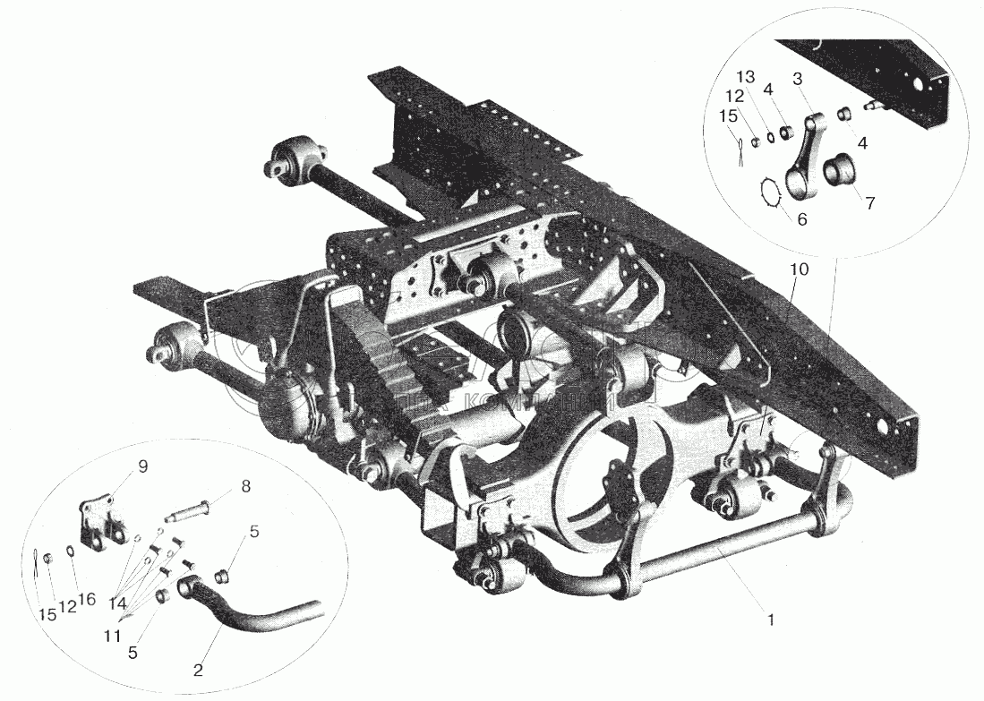 Каталог запасных частей к технике: МАЗ-6422. Подвеска балансирная 551605-2900002, 551605-2900002-10