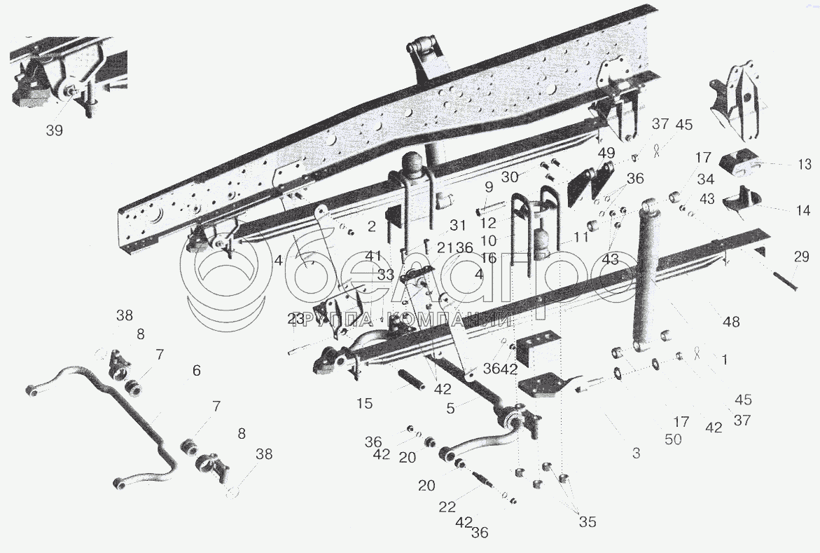 Каталог запасных частей к технике: МАЗ-6422. Подвеска передняя 543208-2900001