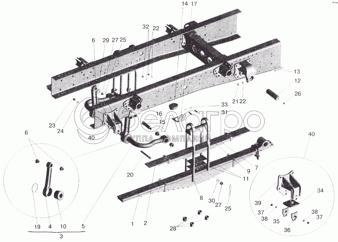 Каталог запасных частей к технике: МАЗ-6422. Подвеска задняя 54321-2900002-10