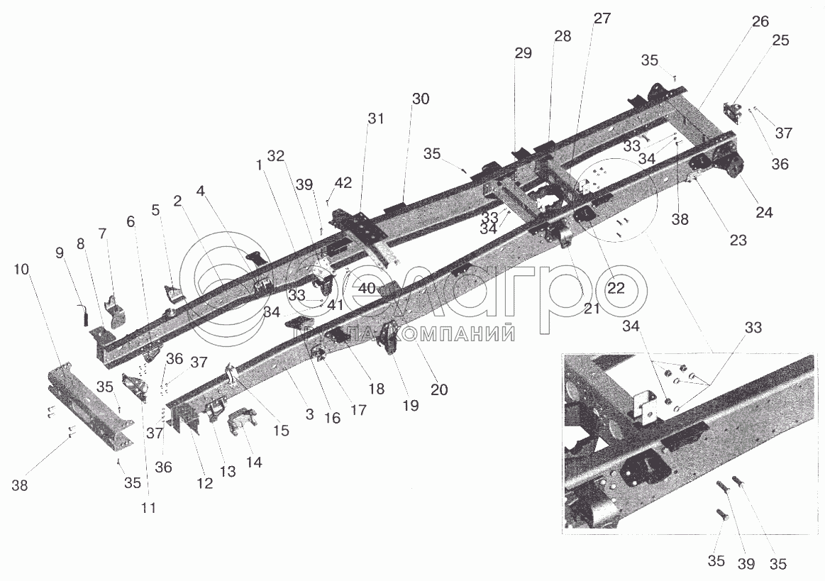 Каталог запасных частей к технике: МАЗ-6422. Рама 555102