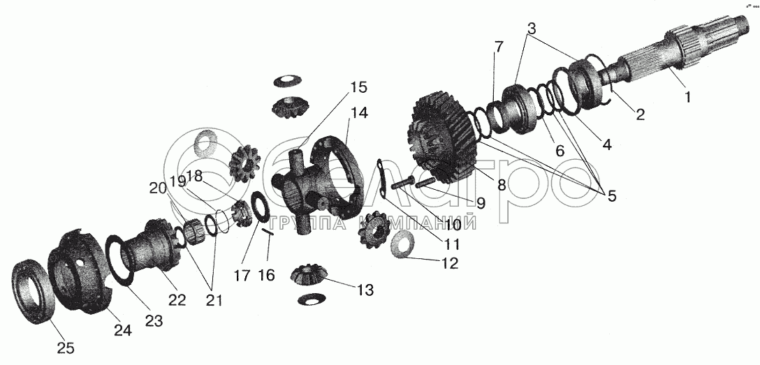Каталог запасных частей к технике: МАЗ-6422. Редуктор среднего моста. Дифференциал межосевой