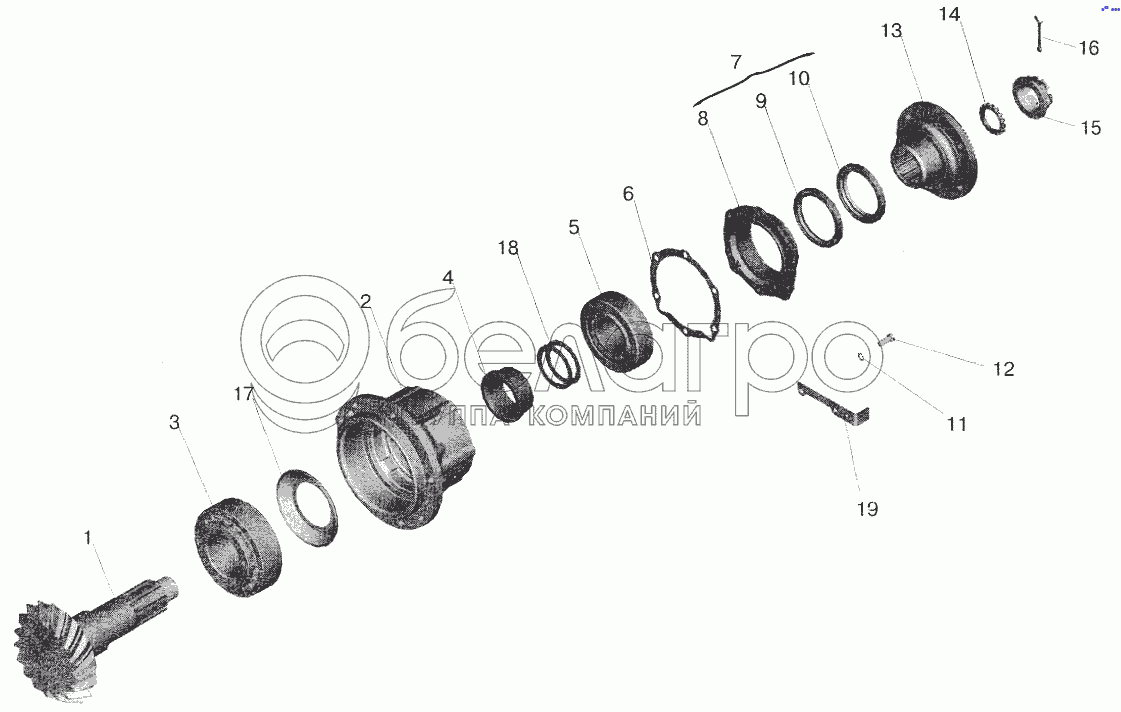 Каталог запасных частей к технике: МАЗ-6422. Редуктор заднего моста. Шестерня ведущая