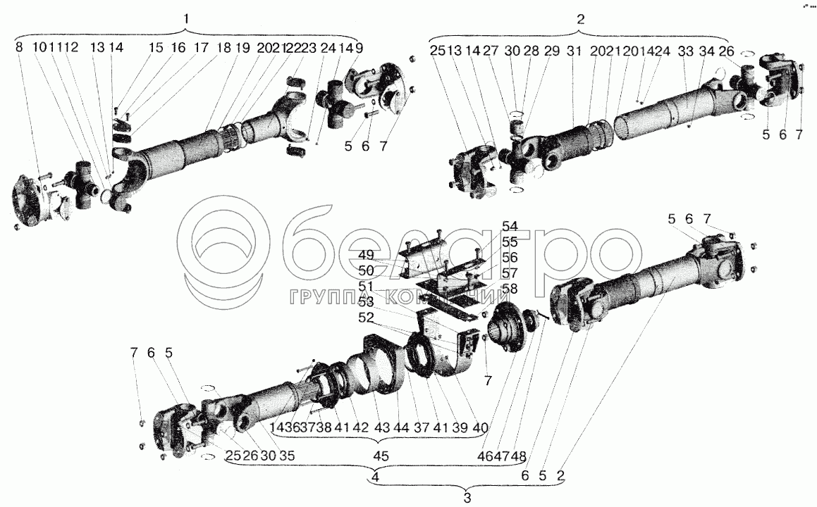 Каталог запасных частей к технике: МАЗ-6422. Установка карданных валов