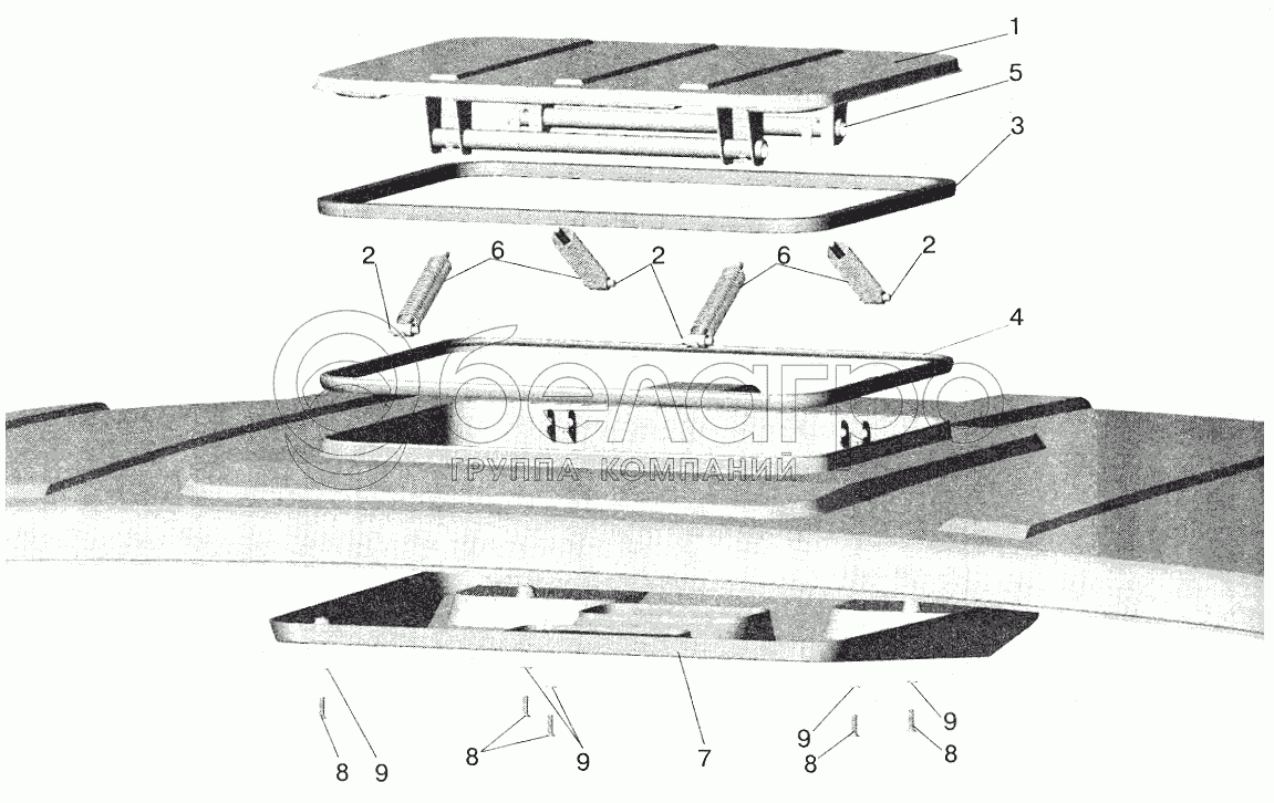 Каталог запасных частей к технике: МАЗ-6422. Установка крышки вентиляционного люка
