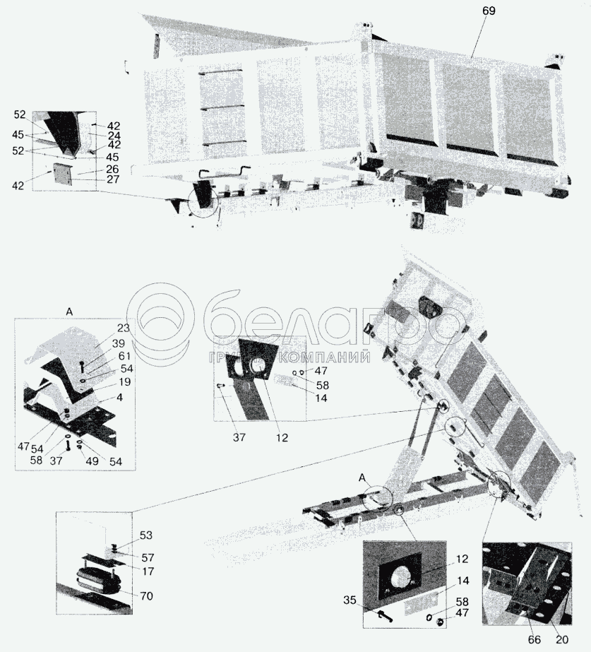 Каталог запасных частей к технике: МАЗ-6422. Установка платформы 5516-8500020-070