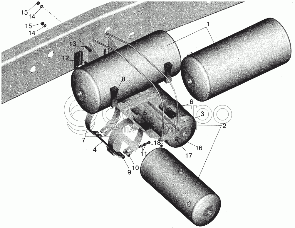 Каталог запасных частей к технике: МАЗ-6422. Установка ресиверов МАЗ-561605, 561603
