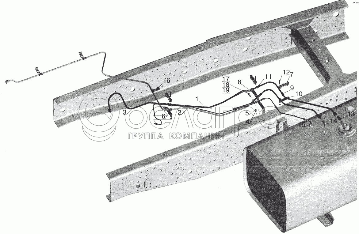 Каталог запасных частей к технике: МАЗ-6422. Установка топливопроводов МАЗ-551603 (без подогревателя)