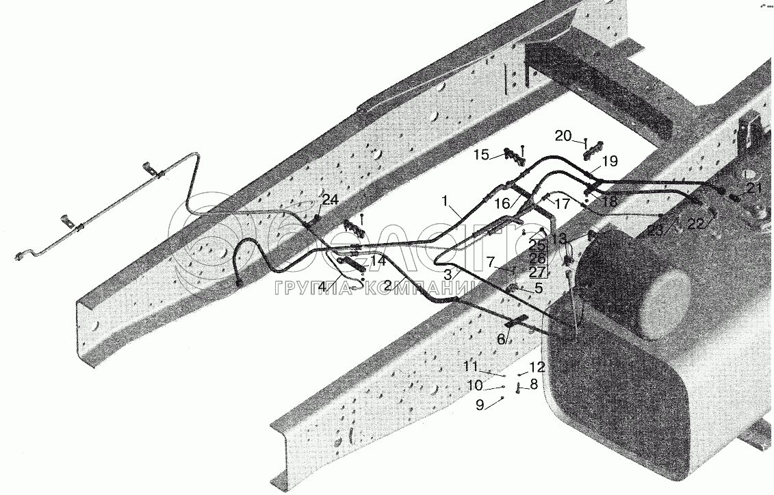 Каталог запасных частей к технике: МАЗ-6422. Установка топливопроводов МАЗ-551603 (с подогревателем)