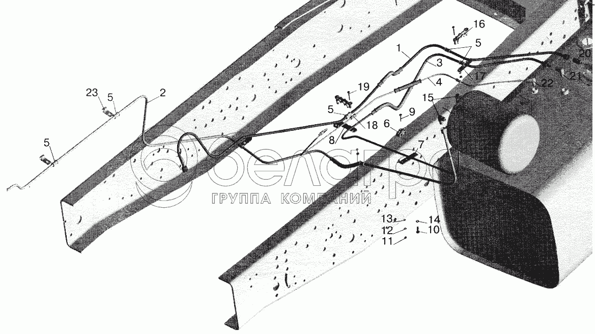 Установка топливопроводов МАЗ-543203, 543202 (без подогревателя)