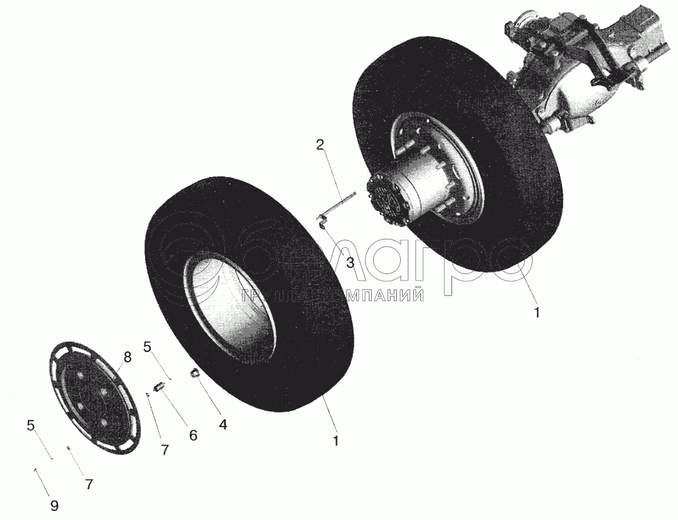 Каталог запасных частей к технике: МАЗ-6422. Установка задних колес