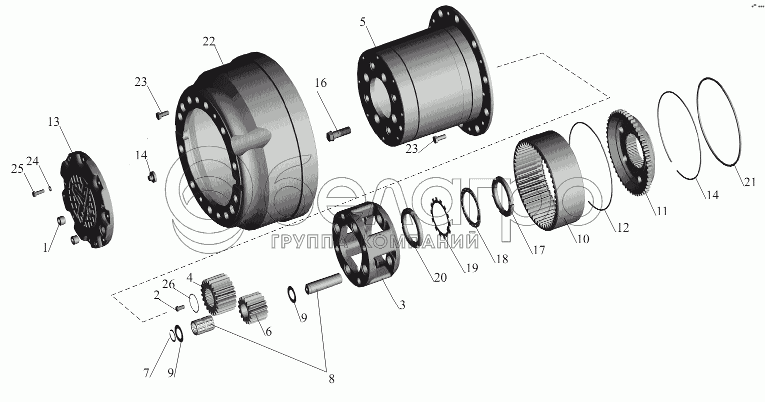 Каталог запасных частей к технике: МАЗ-6422, 5432. Колесный редуктор среднего моста