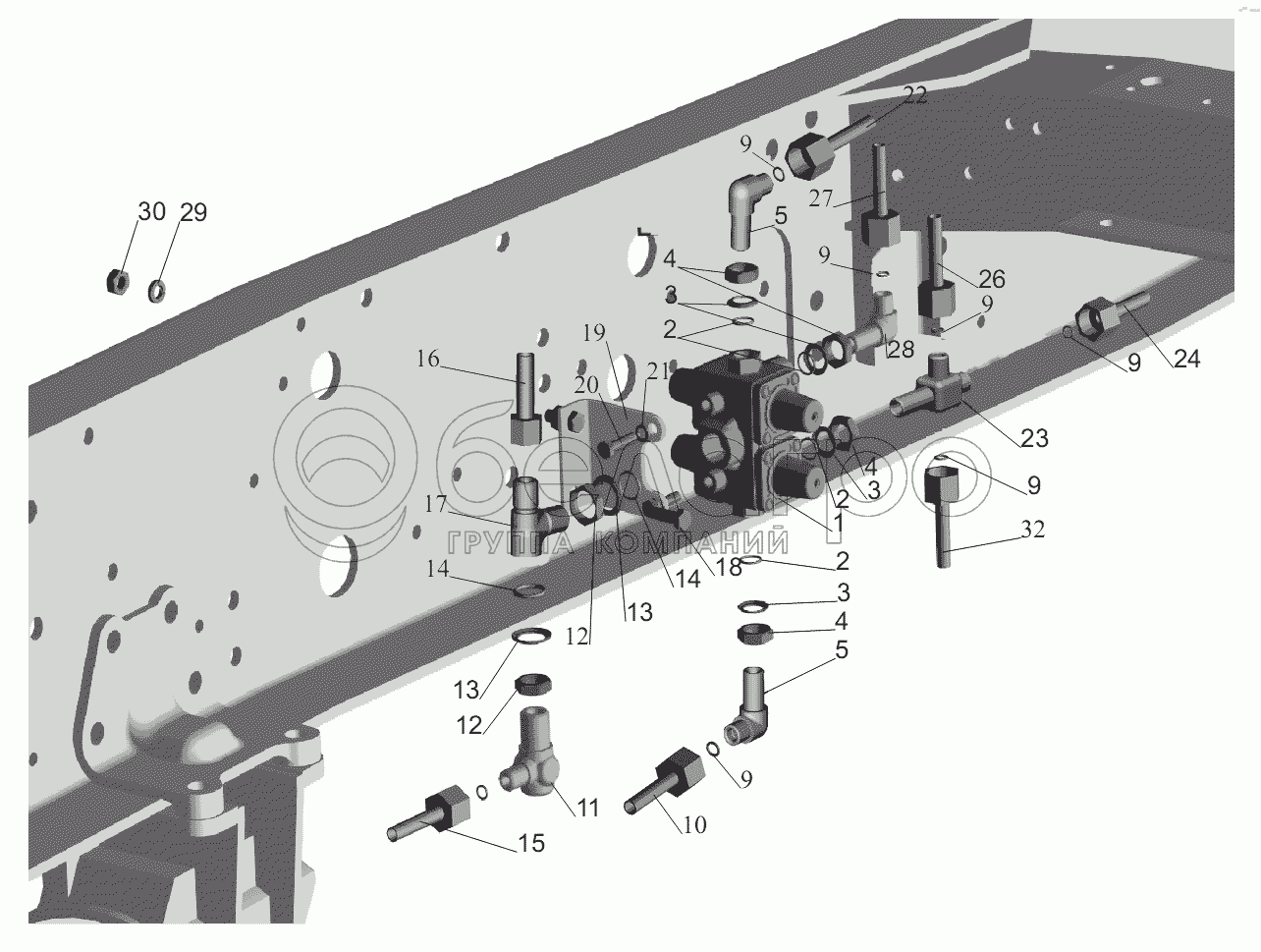 Каталог запасных частей к технике: МАЗ-6422, 5432. Крепление четырехконтурного клапана 5516-3515004