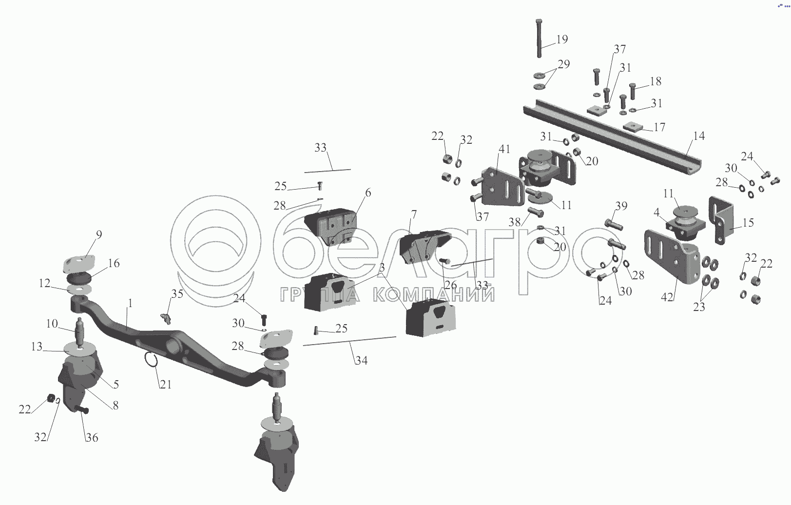 Каталог запасных частей к технике: МАЗ-6422, 5432. Крепление двигателя 5432A5-1001002, -600, -700