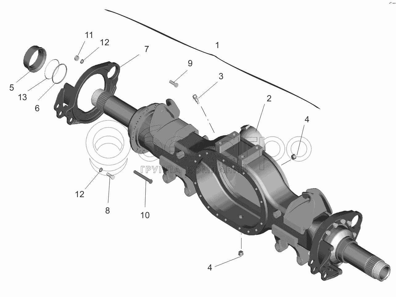 Каталог запасных частей к технике: МАЗ-6422, 5432. Мост средний. Картер моста