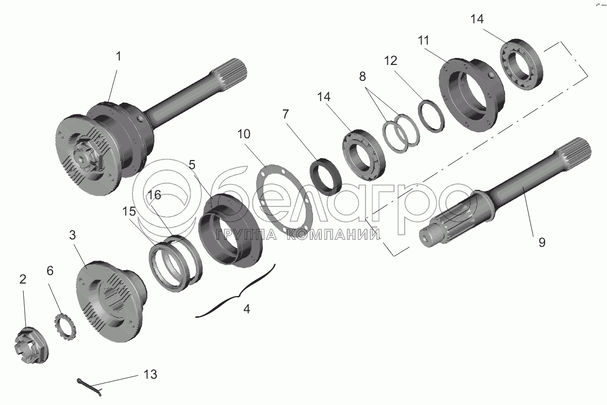 Каталог запасных частей к технике: МАЗ-6422, 5432. Мост средний. Вал задний