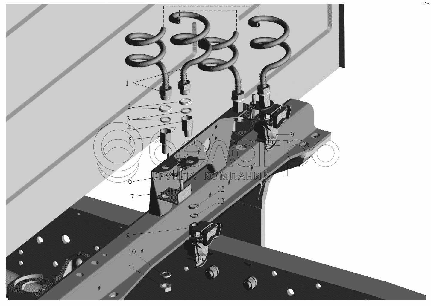 Каталог запасных частей к технике: МАЗ-6422, 5432. Пневмовыводы к полуприцепу 54321-3521004