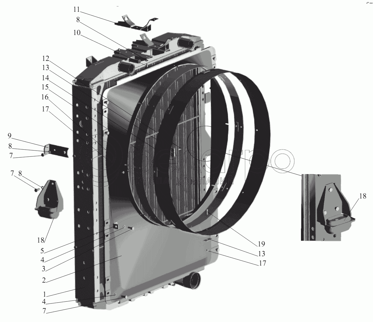 Каталог запасных частей к технике: МАЗ-6422, 5432. Радиатор с кожухом 6303A8-1301009