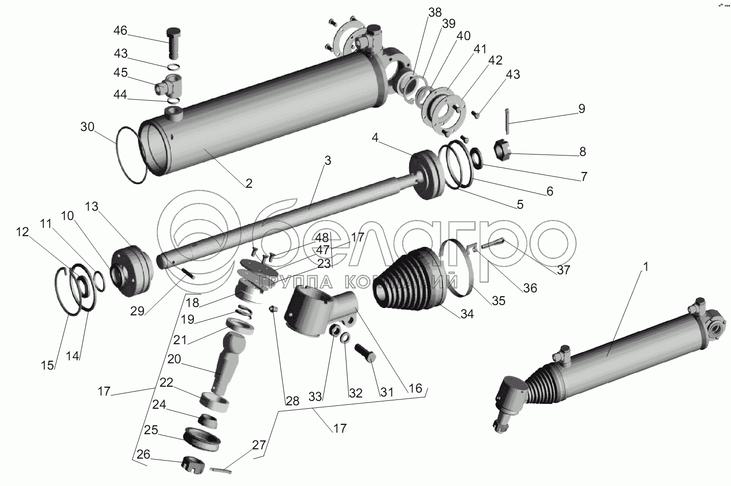 Каталог запасных частей к технике: МАЗ-6422, 5432. Силовой цилиндр гидроусилителя рулевого управления