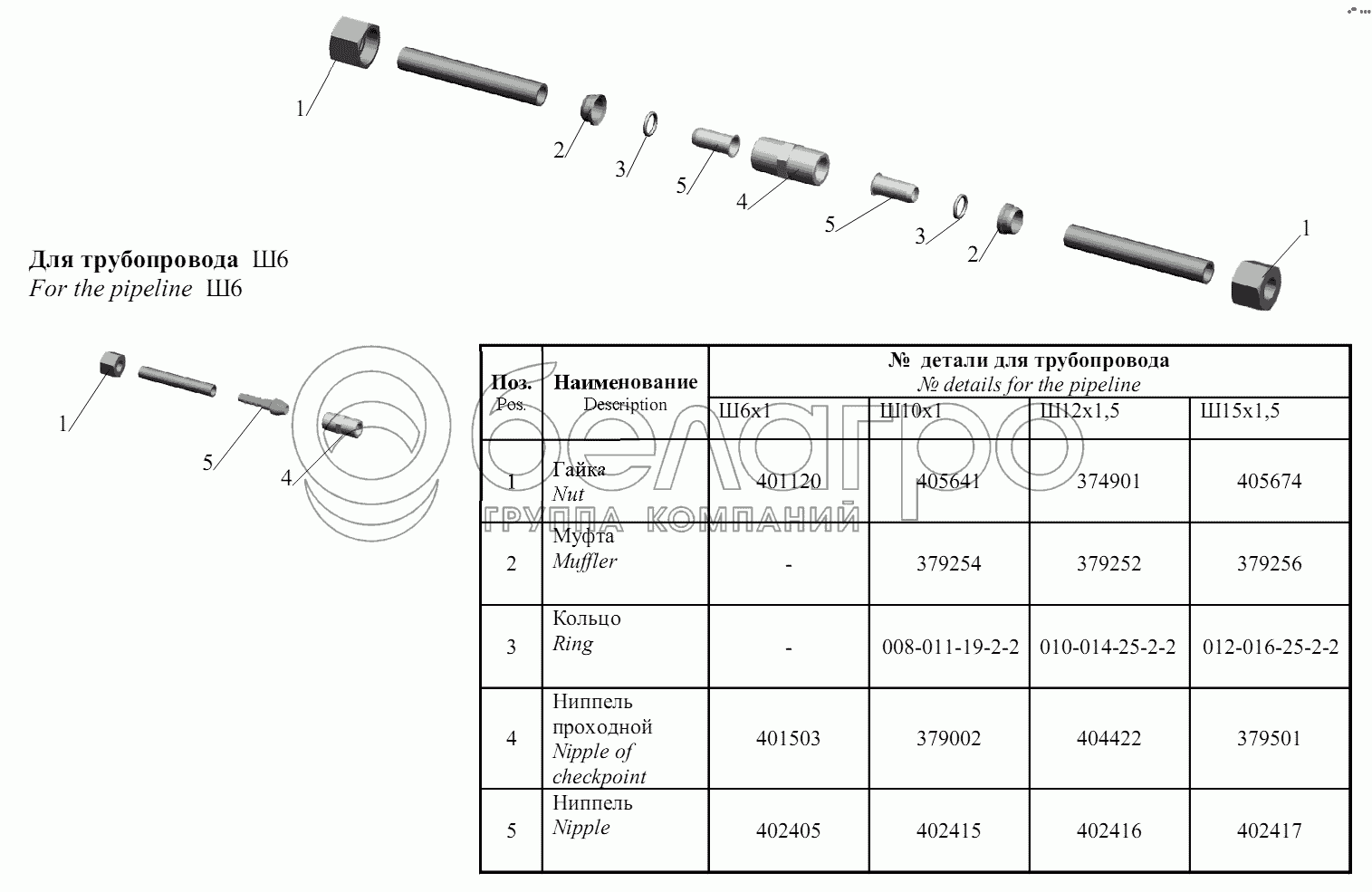 Каталог запасных частей к технике: МАЗ-6422, 5432. Соединение для ремонта поврежденных трубопроводов