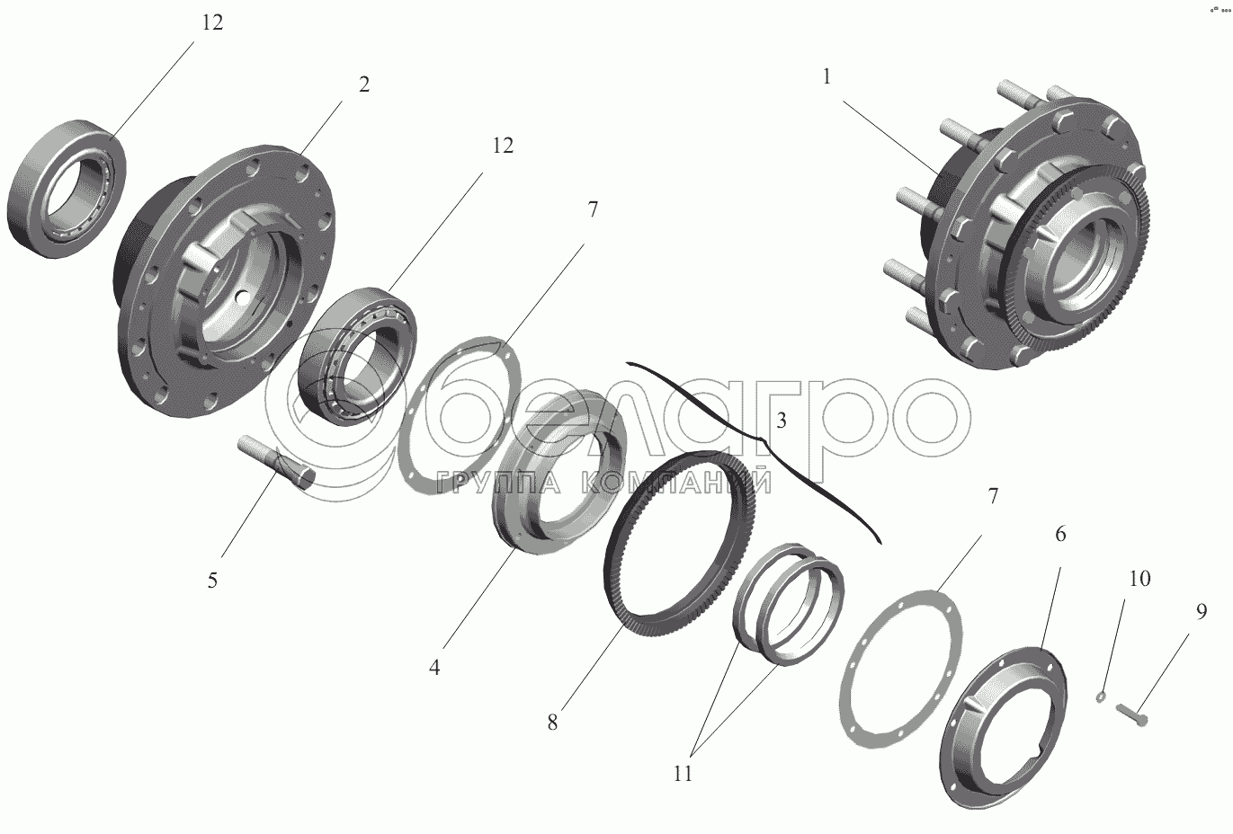 Каталог запасных частей к технике: МАЗ-6422, 5432. Ступица заднего моста
