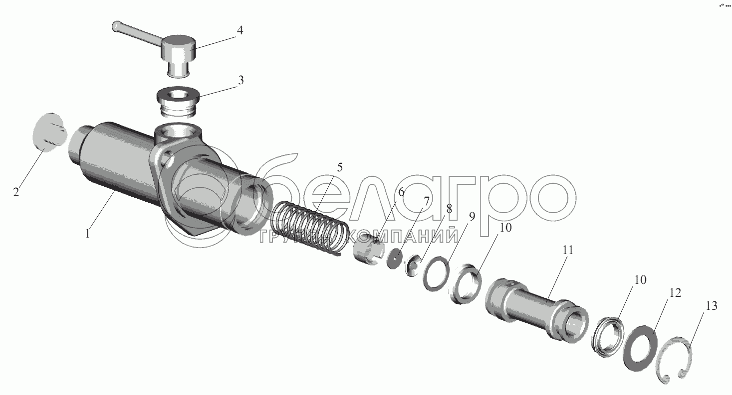 Каталог запасных частей к технике: МАЗ-6422, 5432. Цилиндр подпедальный 6430-1602510