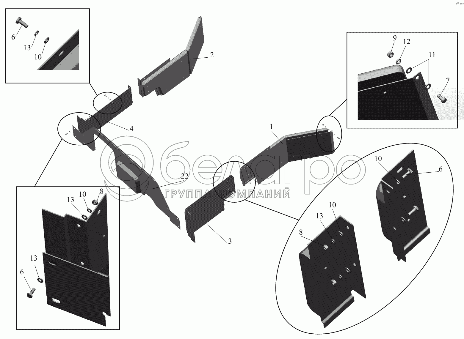 Каталог запасных частей к технике: МАЗ-6422, 5432. Установка экранов 630308-8400030-070