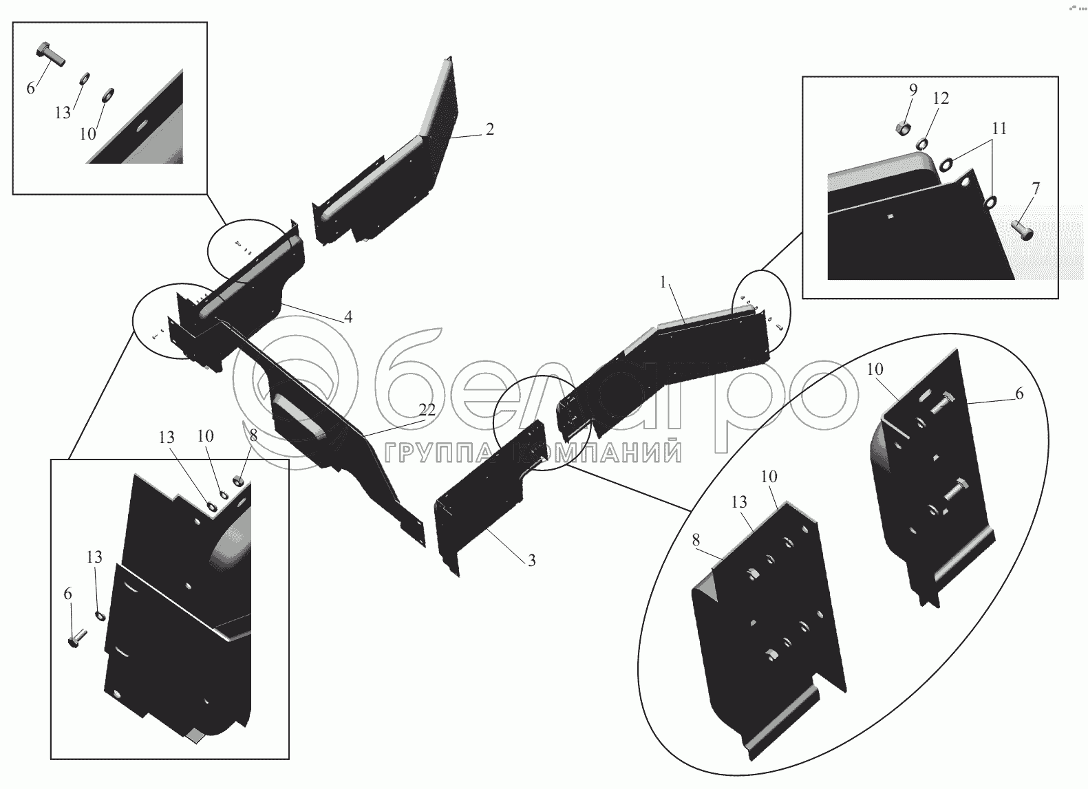 Каталог запасных частей к технике: МАЗ-6422, 5432. Установка экранов 642208-8400030-070