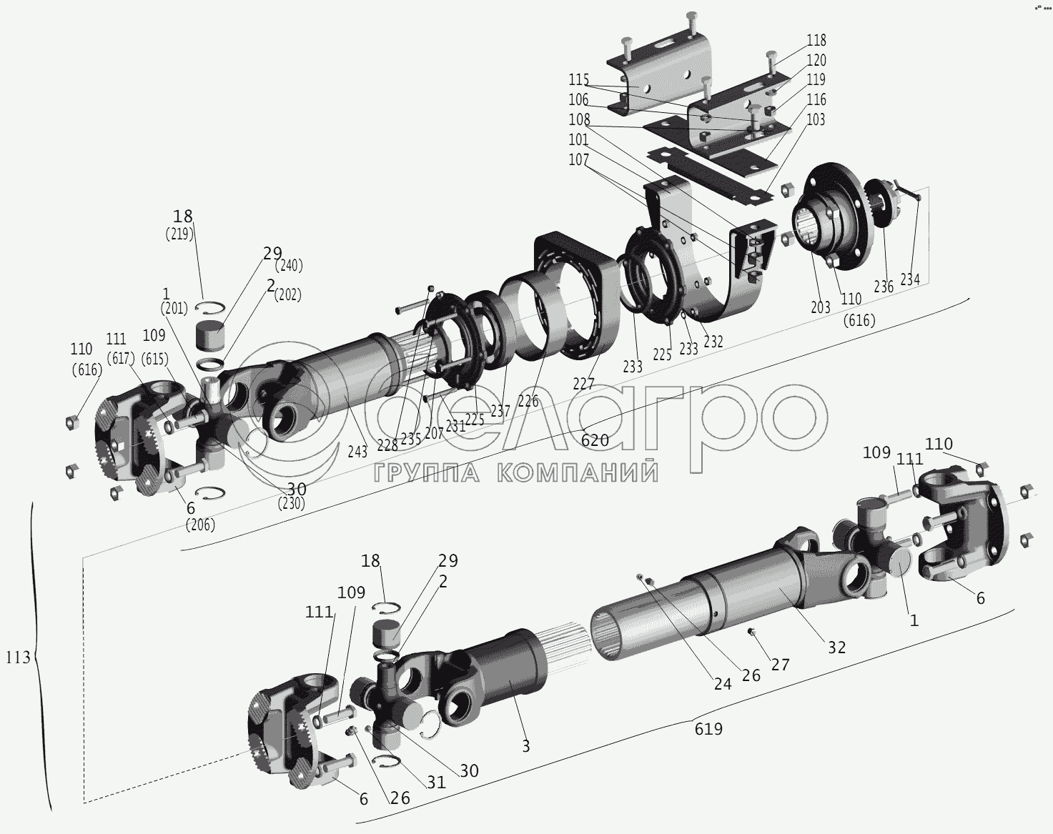 Каталог запасных частей к технике: МАЗ-6422, 5432. Установка карданной передачи