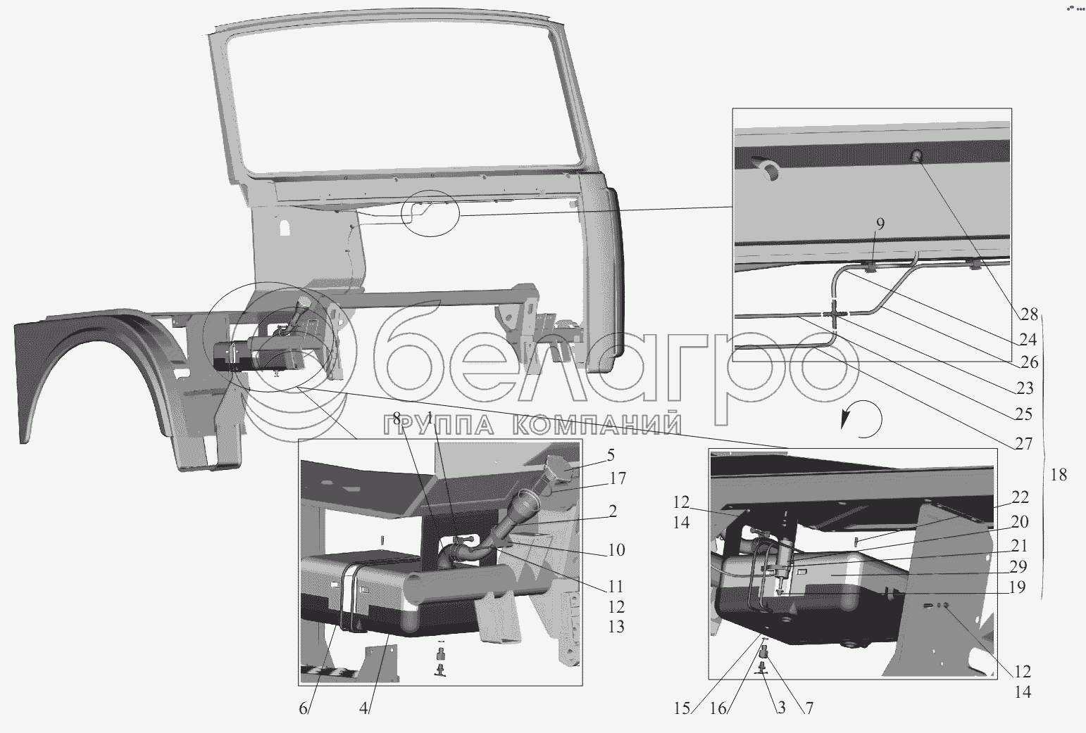 Каталог запасных частей к технике: МАЗ-6422, 5432. Установка омывателя 64221-5200008-01