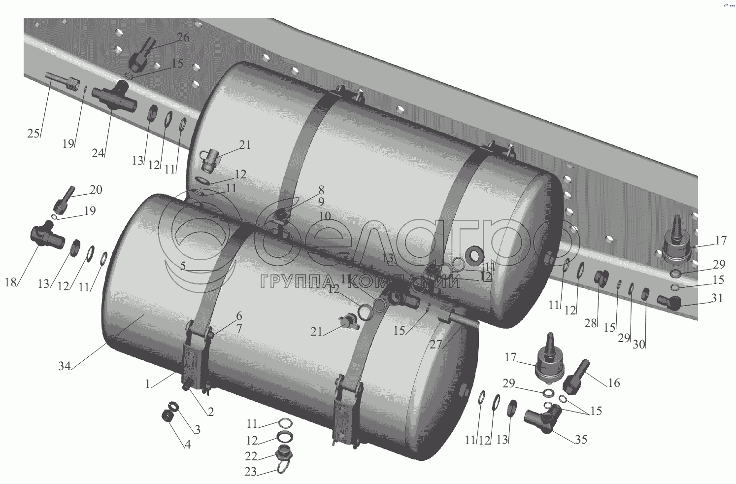 Каталог запасных частей к технике: МАЗ-6422, 5432. Установка ресиверов 54327-3513004