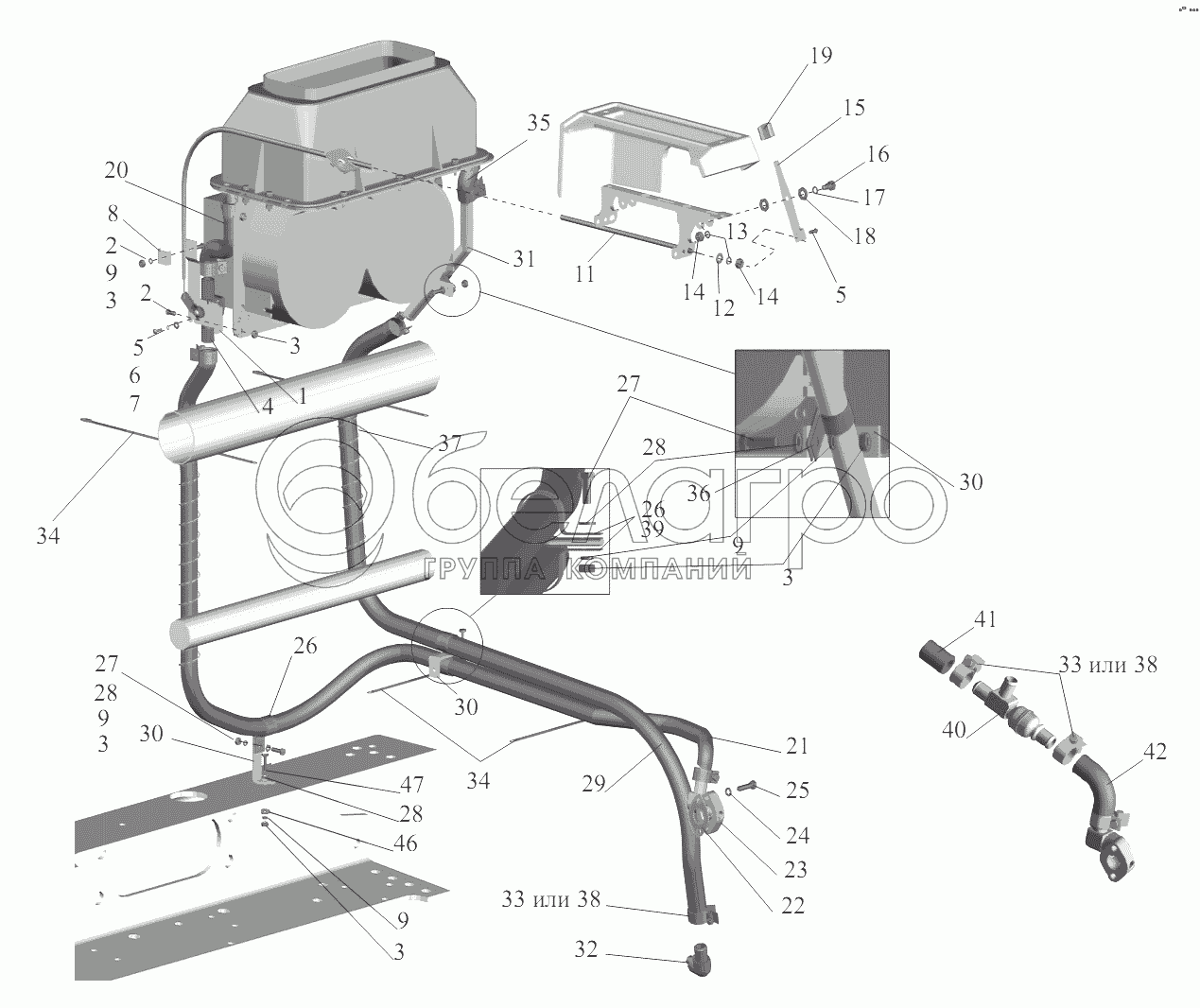 Каталог запасных частей к технике: МАЗ-6422, 5432. Установка шлангов и крана управления отопителем