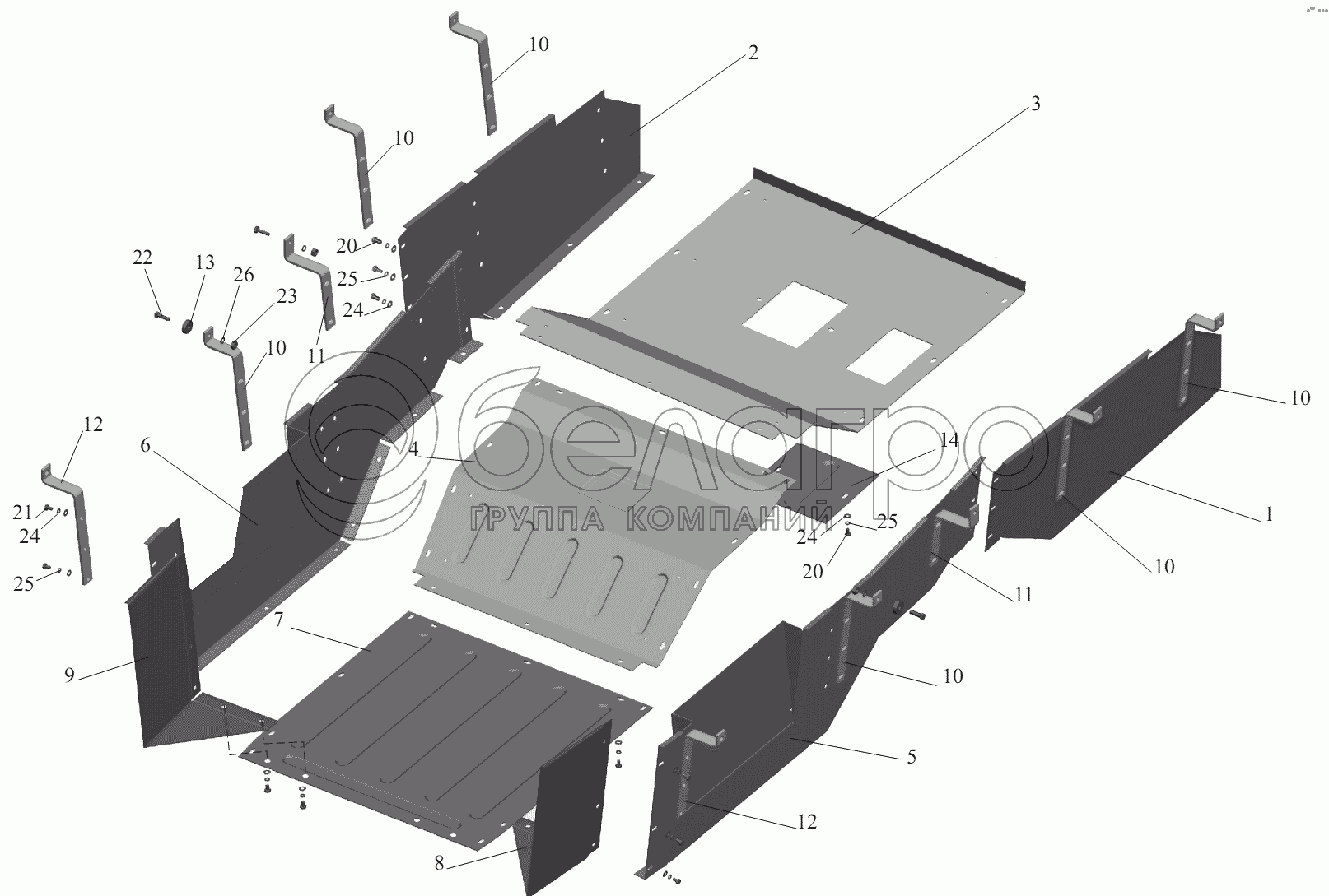 Каталог запасных частей к технике: МАЗ-6422, 5432. Установка шумоизоляционных экранов 543208-1061004