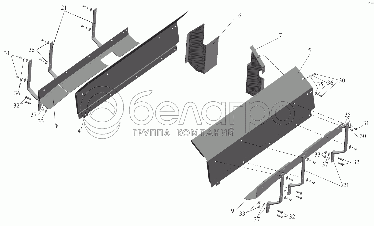 Каталог запасных частей к технике: МАЗ-6422, 5432. Установка шумоизоляционных экранов 642208-1061003