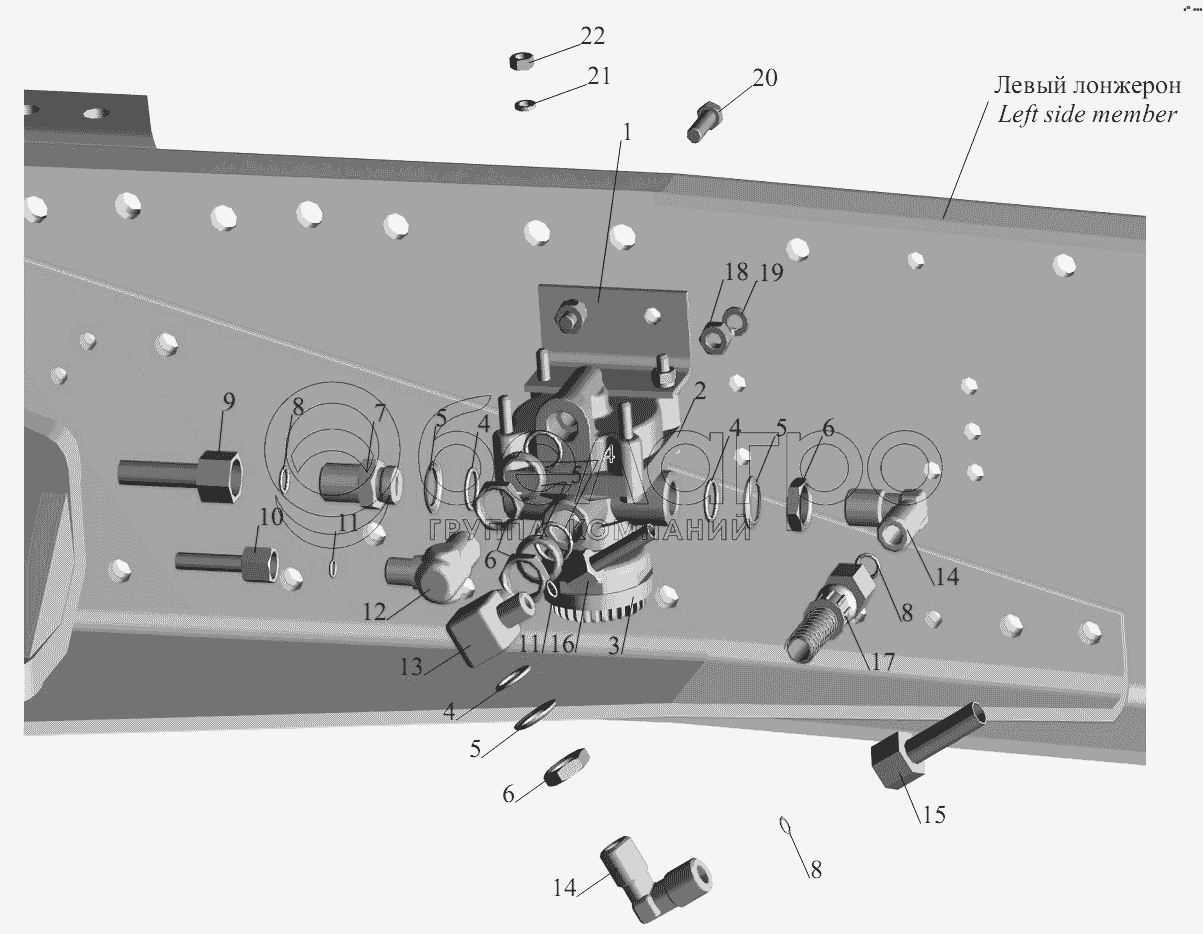 Каталог запасных частей к технике: МАЗ-6422, 5432. Установка ускорительного клапана 555102-3518004