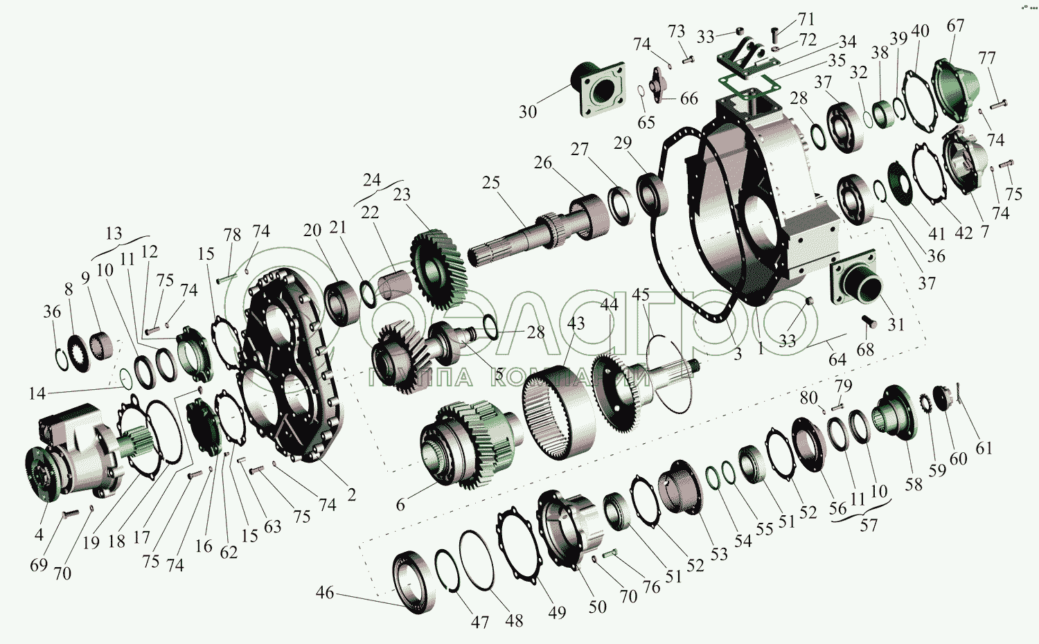 Каталог запасных частей к технике: МАЗ-642505, 642508. Коробка раздаточная 631708-1800020-010